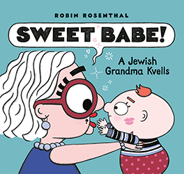 Almost everyone is familiar with the stereotypical image of a Jewish grandmother, so besotted with her little one that she can barely contain her joy. In Sweet Babe!: A Jewish Grandma Kvells, Robin Rosenthal embraces that character with no reservations. Her words and pictures present an older woman with a sense of style, secure in her age, who embodies the best characteristics of grandmotherly love. Her effusive, Yiddish-inflected, language and glorious physicality remove any taint of excess from her character.
