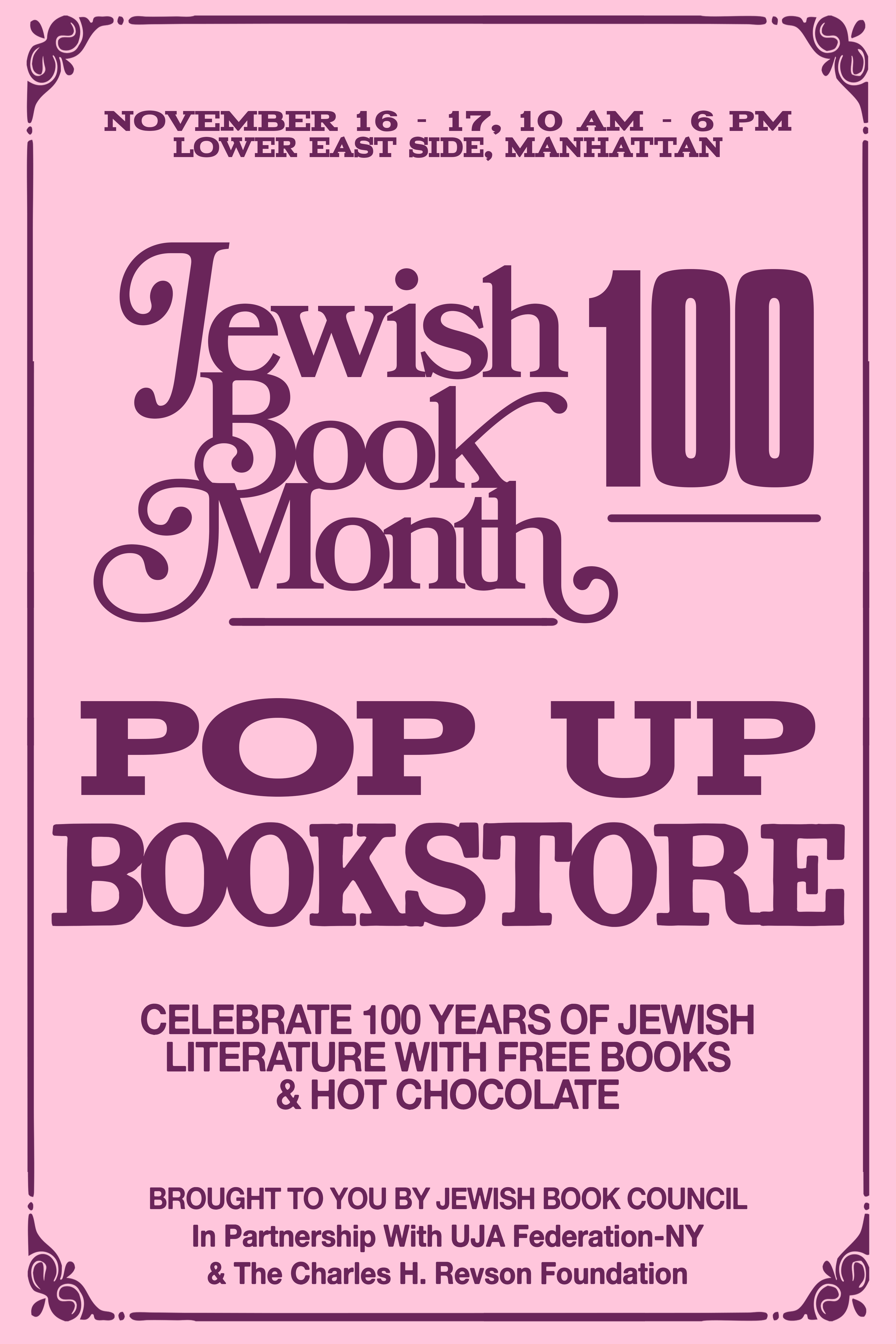 In honor of Jewish Book Month 100, Jewish Book Council—in partnership with UJA Federation-NY and the Charles H. Revson Foundation—is turning 81 Hester Street into a cozy Jewish bookstore. From November 16 – 17, Jewish Book Council is giving away 1,000 free Jewish books, hot chocolate, and Jewish literary goodies. Stop by to join in the celebration of Jewish Book Month!