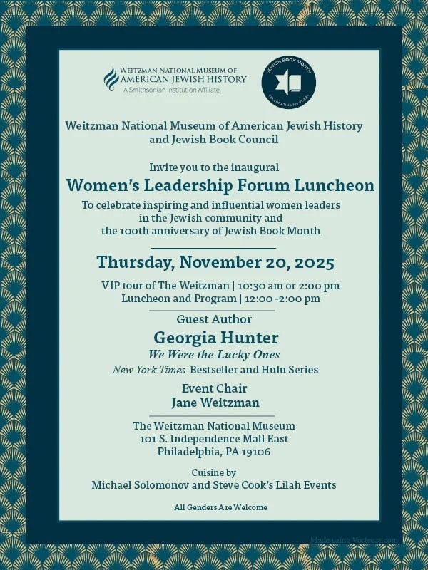 Event Women’s Leadership Forum Luncheon Thursday, November 20, 2025 10:30am–2pm Weitzman National Museum of American Jewish HistoryPhiladelphia, PA