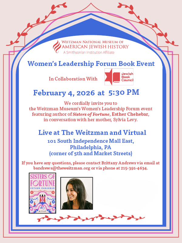 We cordially invite you to the Weitzman Museum’s Women’s Leadership Forum event featuring author of Sisters of Fortune, Esther Chehebar, in conversation with her mother, Sylvia Levy.